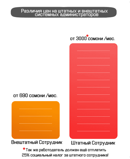 Приходящий сисадмин, в среднем, обходится вдвое дешевле, чем штатный сотрудник. Экономию затрат можно считать главным аргументом в его пользу, но далеко не единственным.