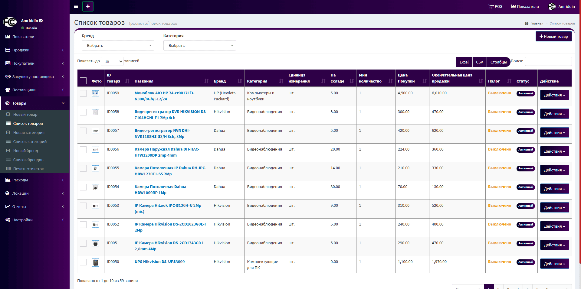 ✅ Управления товарами, категориями и брендами
