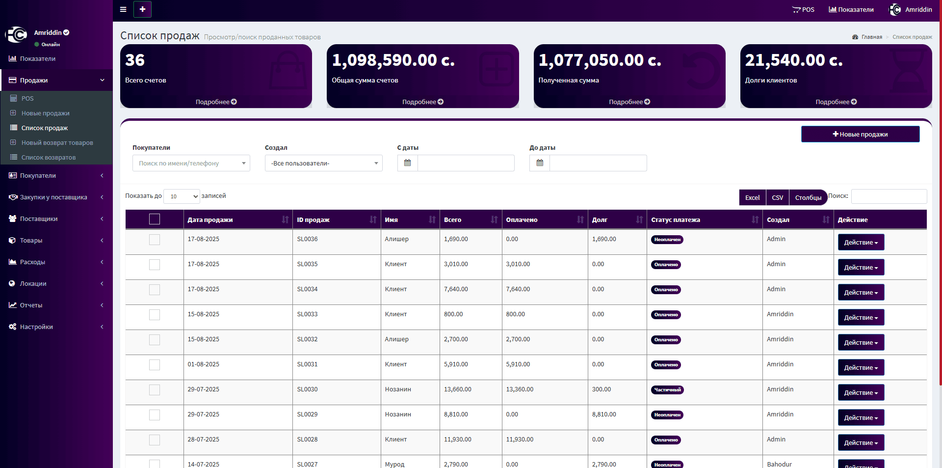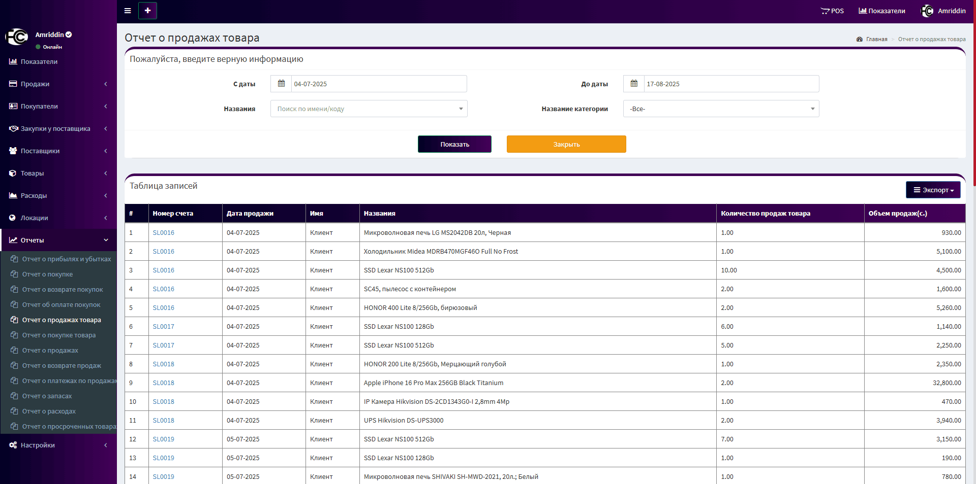 ✅ Отчеты о покупках, продажах, расходах и прибыли